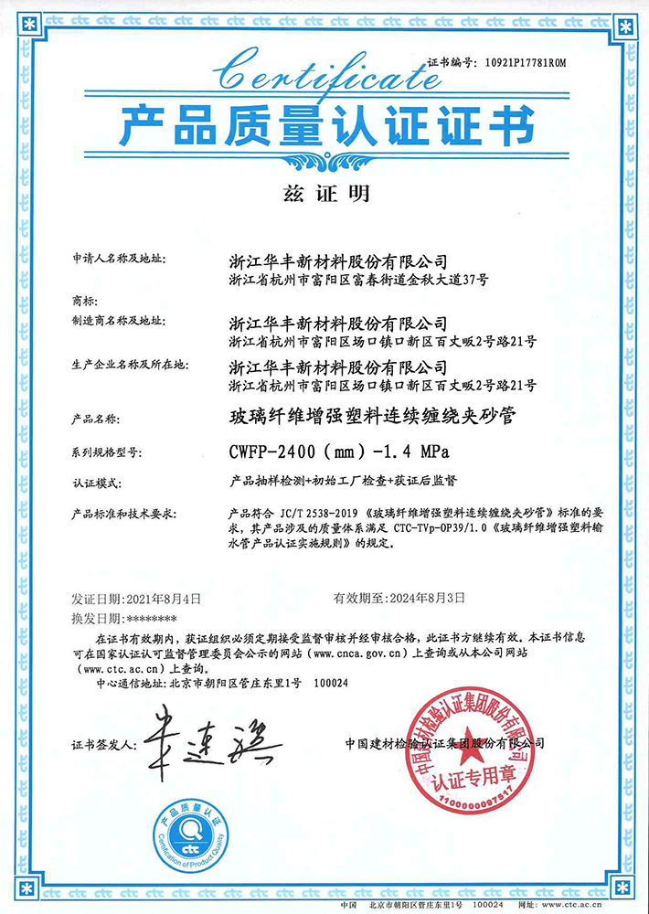 玻璃纖維增強塑料夾砂管(連續纏繞工藝)